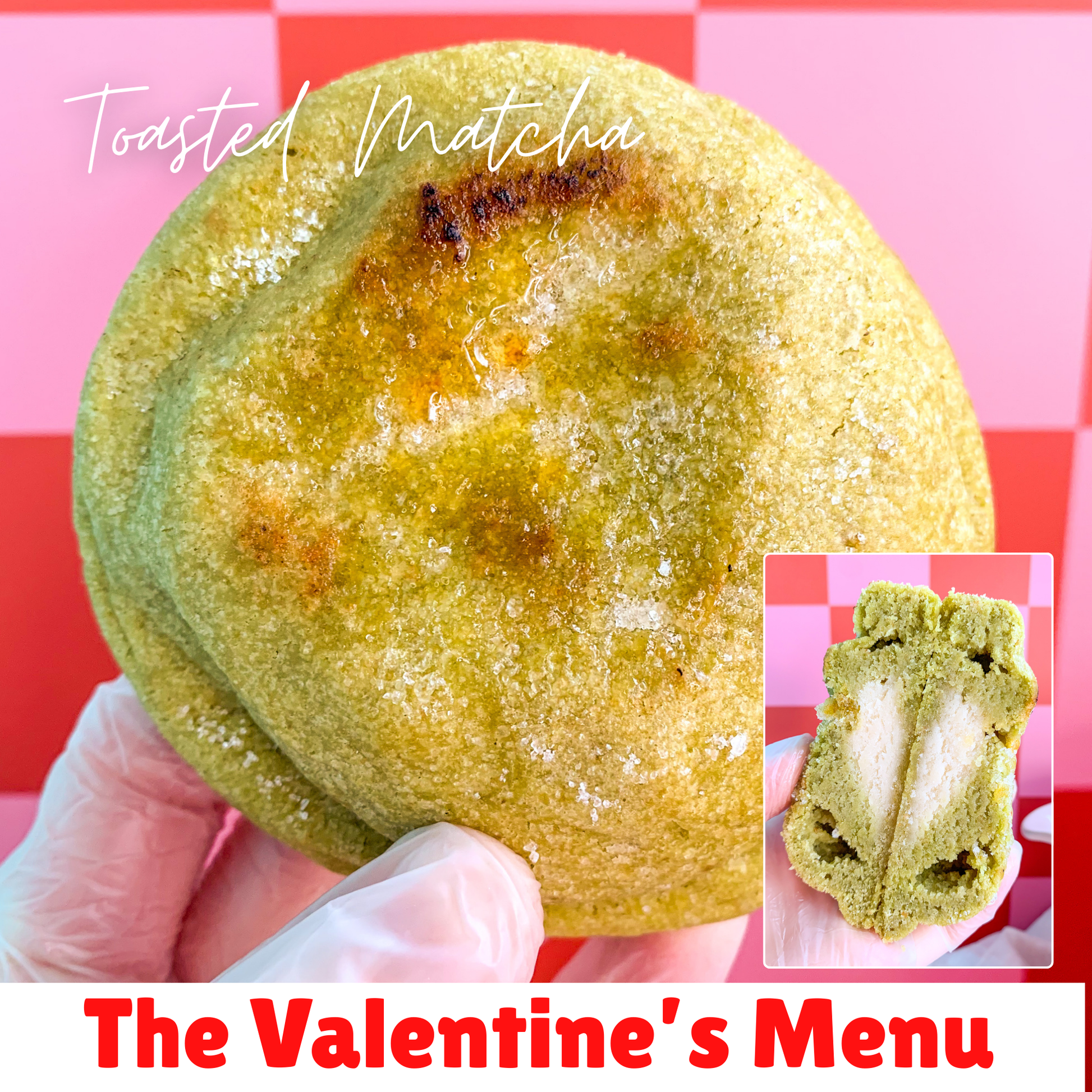 A gently sweet matcha cookie wrapped around a delicate meltaway almond cookie, finished with a brûléed top. Earthy, nutty, and gently toasted, with layers of flavour that make every bite a little different.