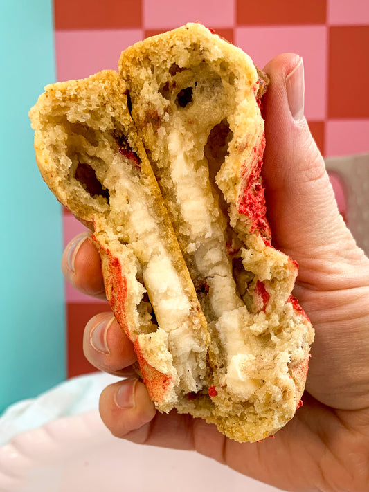 This cookie brings together the perfect combination of bright strawberries, crunchy Biscoff cookie pieces, and a creamy cheesecake centre. It’s the kind of treat that feels familiar, yet totally unexpected, with each bite offering a mix of soft, chewy texture and a hint of tangy sweetness. Whether you're in the mood for something indulgent or just need a little pick-me-up, this cookie’s got you covered!